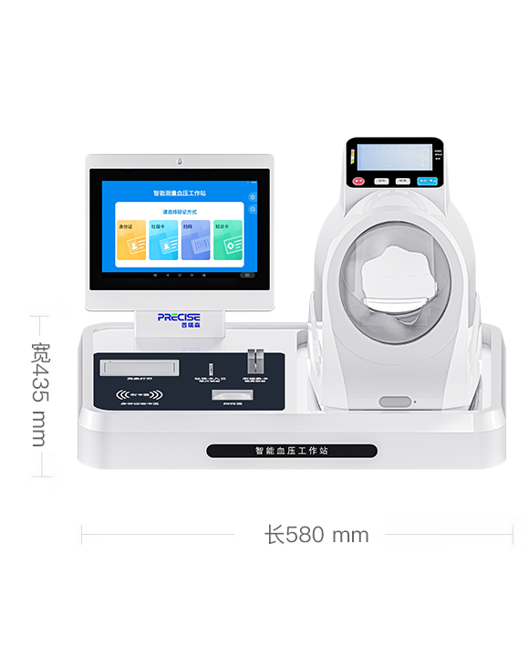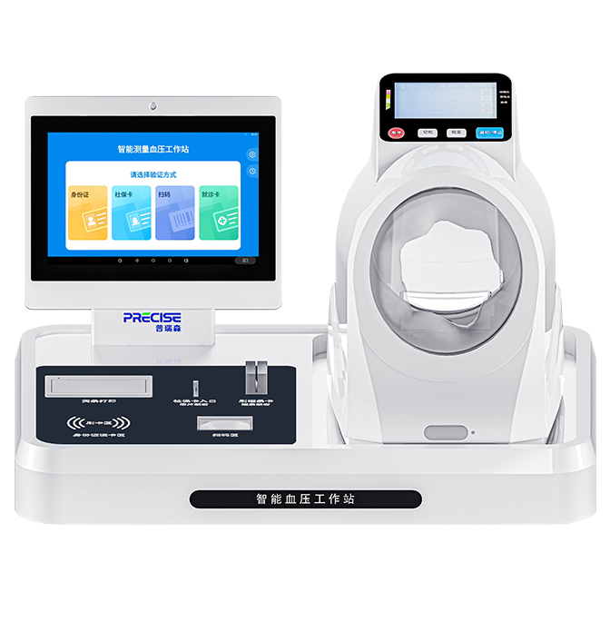 品牌名称:普瑞森 产品名称:智能血压测量工作站 产品型号:PRS-X1L 尺寸:58*43.5*34cm 标配功能:舒张压、收缩压、脉率 拓展功能:体温、血氧 屏幕尺寸:10.1寸高清触摸屏 登记方式:身份证、人脸识别、医保卡、IC卡、ID卡、条形码、二维码、磁条卡 可对接:医院HIS系统、电子病历系统、公卫系统、慢病管理平台。 适用场景